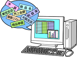 デスクトップパソコンに映る集計画面 Stock イラスト Adobe Stock