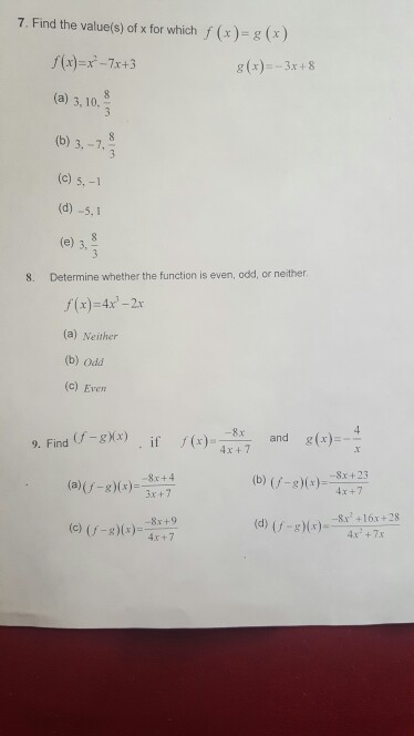 7 Find The Value S Of X For Which F X G X Chegg Com